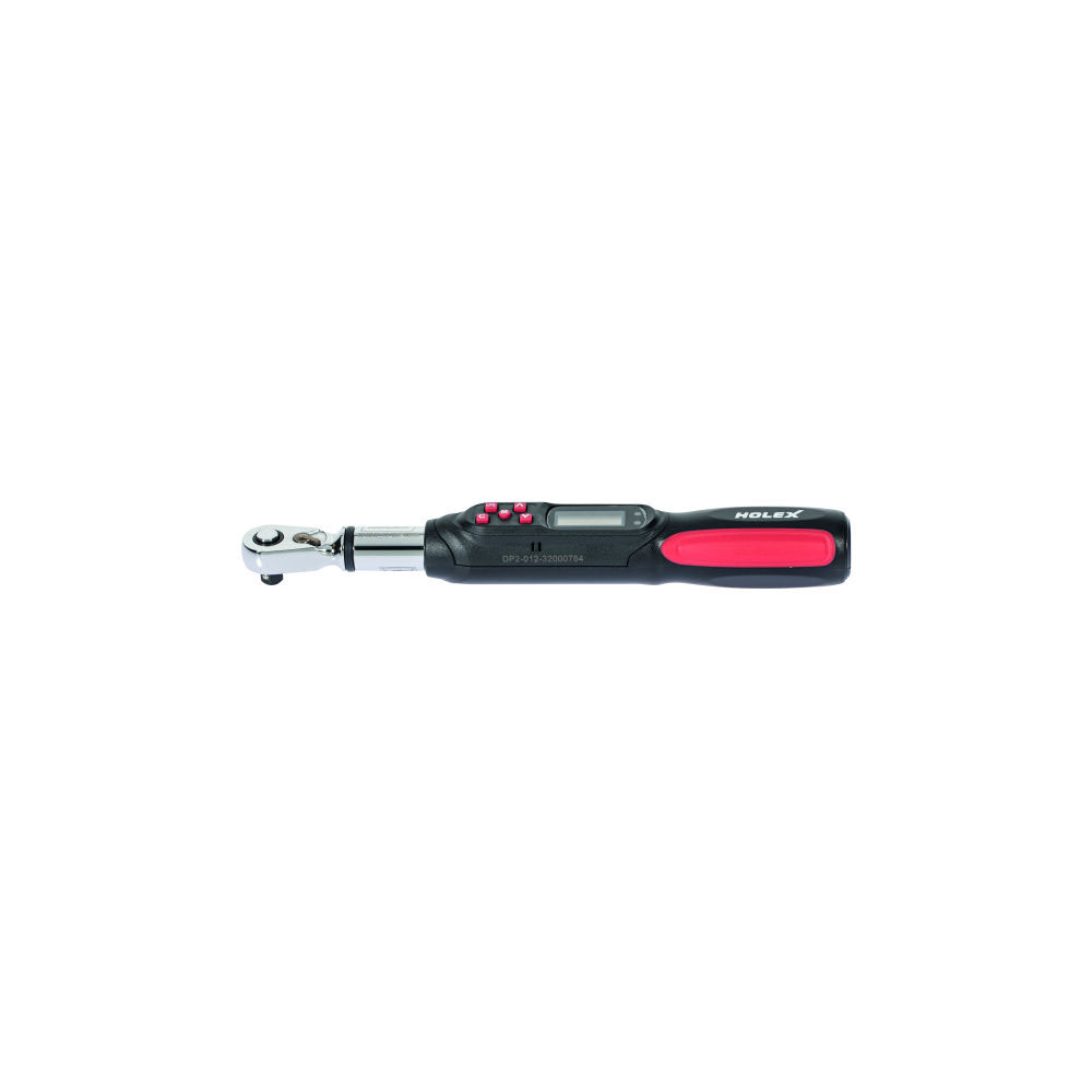 Robust torque wrench with impact resistant casing, 2-component handle, large display and reversible ratchet. Easy operation using large input buttons. Visual and acoustic signal indicates achievement of the set torque visually and audibly. Two working modes; selectable between peak value display and following display. The working memory can store up to 50 torque settings.