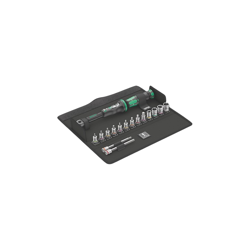• 16-piece wrench set for bicycle applications with torque control including Wera Clique-Torque wrench A 5 (2.5-25 Nm).